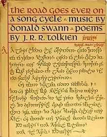 The Road Goes Ever On is a song cycle first published in 1967 as a book of sheet music and as an audio recording. The music was written by Donald Swann, and the words are taken from poems in J. R. R. Tolkien's Middle-earth writings, especially The Lord of the Rings. The title of the song cycle is taken from "The Road Goes Ever On", the first song in the collection. The songs are designed to fit together when played in sequence. The ninth song "Lúthien Tinúviel" was added in an appendix rather than in the main sequence. Swann performed the cycle for Tolkien, who approved of the music except for the Quenya song "Namárië"; he suggested it should be in the style of a Gregorian chant, which he hummed; Swann used that melody for the song.