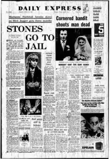 The headline of the Evening Standard was "Naked Girl at Stone's party". [20] In the immediate aftermath of the raid, the News of the World did not name the celebrities involved, but on 18 March—a couple of days after the group returned from Morocco—the Daily Mirror named Jagger and Richards ahead of their court appearances.[34]