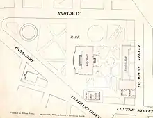 The Rotunda was built at the initiative of American artist John Vanderlyn to display panoramic paintings. According to historians Edwin G. Burrows and Mike Wallace, Vanderlyn was motivated by the refusal of the city's cultural elite to include paintings such as his nude Ariadne Asleep on the Island of Naxos[2] in public exhibitions on the grounds that it was an affront to public decency.[3] Backed by John Jacob Astor and other wealthy New Yorkers, he built The Rotunda. Widely regarded as the city's first art museum,[4][5][1] it operated on a commercial footing.[3]