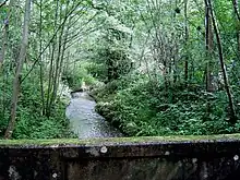 It runs under the six-lane A3 into wooded Arbrook Common there joined by three further headwaters rising in the suburban village of Claygate, immediately to the east (right bank).[1][2] It carries on north bounding Littleworth Common and Hinchley Wood to the Scilly Isles roundabout at part of a remnant of the wooded Ditton Marsh, now part of Esher. It then follows the Portsmouth Road east through part of Thames Ditton and alongside the South West Main Line. It receives its shorter east branch (rising in Surbiton Golf Course, Long Ditton) then turns running into the Thames near Ferry Road, 800 metres north.[3]