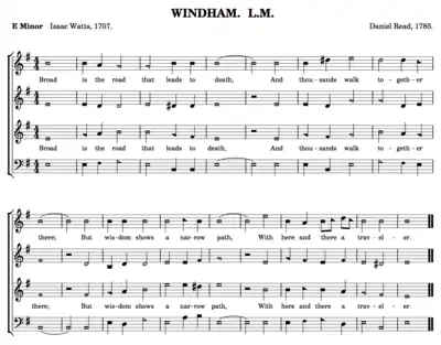 - Sources for this paragraph: Marini 2003, p. 77, Temperley 1983, and the essay "Distant Roots of Shape Note Music" by Keith Willard, posted at the fasola.org web site Archived 16 May 2008 at the Wayback Machine.