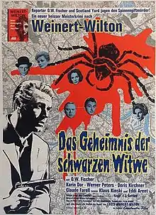The Secret of the Black Widow (German: Das Geheimnis der schwarzen Witwe) is a 1963 West German crime film directed by Franz Josef Gottlieb and starring O. W. Fischer, Karin Dor and Klaus Kinski.[1][2] It is part of a boom of Krimi films produced during the decade, the third of four films based on the work of Louis Weinert-Wilton that came in the wake of Rialto Film's successful Edgar Wallace adaptations. It was shot in Spain. The film's sets were designed by the art director Ramiro Gómez.