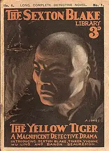 Issue # 1 (1915) of The Sexton Blake Library was published on 20 September 1915, entitled "The Yellow Tiger" and written by George Hamilton Teed. This issue featured popular Blake villains Wu Ling and Baron de Beauremon in an eleven chapter story, costing 3d (1.25p). The story is 107 pages; a second story, "The Great Cup-Tie!" (not featuring Blake) completes the remainder of the issue's 120 pages.[13]