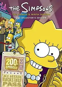 The DVD boxset for season nine was released by 20th Century Fox in the United States and Canada on December 19, 2006, eight years after it had completed broadcast on television. As well as every episode from the season, the DVD release features bonus material including deleted scenes, animatics, and commentaries for every episode. As with the two preceding seasons, the set was released in two different packagings: A "Collector's Edition" plastic packaging molded to look like Lisa's head, and a standard rectangular cardboard box featuring Lisa with a backstage pass to a show at a club.[66] The menus continue the same format from the previous four seasons, and the overall theme is various characters waiting in line at a club.