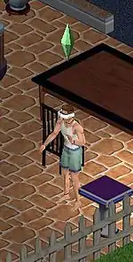 Sims are influenced by the player to interact with objects or other Sims. Sims may receive guests at their home lot, invited or not, from other playable lots or from unhoused non-player character (NPC) Sims. If enabled in the game's options, Sims have a certain amount of free will, allowing them to autonomously interact with their world. However, the player can override most of these autonomous actions by canceling them in the action queue at the top of the screen. Unlike the simulated environments in games such as SimCity, SimEarth or SimLife, Sims are not fully autonomous.[9] They are unable to take certain actions without specific commands, such as paying bills, finding a job, exercising, and conceiving children. Sims communicate in a fictional language called Simlish, which is mostly composed of blowing raspberries and saying nonsense.[10]