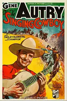 The Singing Cowboy is a 1936 American Western film directed by Mack V. Wright and starring Gene Autry, Smiley Burnette, Lois Wilde and Lon Chaney Jr. Based on a story by Tom Gibson, the film is about a cowboy who decides to sing on television in order to raise money for the orphaned daughter of his former boss who was murdered.[1]