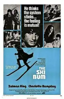 The Ski Bum is a 1971 American drama film directed by Bruce D. Clark, written by Bruce D. Clark and Marc Siegler, and starring Zalman King, Charlotte Rampling, Joseph Mell, Dimitra Arliss, Tedd King and Dwight Marfield. Based on the 1965 novel The Ski Bum by Romain Gary, it was released by Embassy Pictures.[3][4][5]