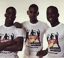 The Skinny Boys are an American hip hop group, originally from Bridgeport, Connecticut.[1] The Skinny Boys members are Shockin' Shawn (Shaun Harrison), Superman Jay (James J. Harrison), and The Human Jock Box (Jacque D. Lloyd).[1] The Skinny Boys were influenced by the much more prominent hip hop pioneers The Fat Boys,[1] and their single "Jock Box" was influenced by The Fat Boys' member Human Beat Box. As of September 21,2021, they have been awarded "The Key to the City" in Bridgeport, Connecticut.