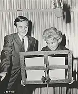 In 1959, the film was dubbed into English and released by Universal Pictures with the voices of Sandra Dee and Tommy Kirk as Gerda and Kai.[7][8] The film was introduced by a six-minute live-action Christmas prologue featuring TV personality Art Linkletter, as well as a two-minute montage.[9] In the prologue, Linkletter recited the following rhyme just before the film began: "One snowflake two/three snowflakes four/And now you'll see 'The Snow Queen'/if you add a million more." The American version also contained an entirely rewritten musical score and had three new songs in English, two of which replaced the Russian songs (the other one was in the montage).[10] Hollywood Russian composer Joseph Gershenson composed the score for the 1959 film.[11]