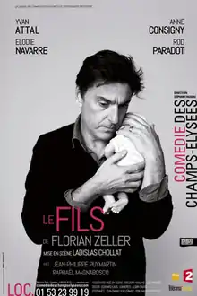 The Son (French: Le Fils) is a play by Florian Zeller. It premiered in February 2018 at the Comédie des Champs-Élysées, Paris, with Yvan Attal (Pierre), Anne Consigny (Anne), Élodie Navarre (Sofia) and Rod Paradot (Nicolas).[2] The play was produced again in September 2018, with Stéphane Freiss replacing Attal and Florence Darel replacing Consigny.[3] The play was translated into English by Christopher Hampton and premiered in London in February 2019.[4]