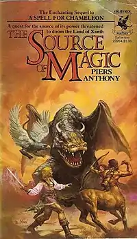 The Source of Magic is a fantasy novel by British-American writer Piers Anthony, the second book of the Xanth series.[1] This novel begins one year after the events of A Spell for Chameleon, and describes the adventures of Bink after he has settled down with his pregnant wife, Chameleon. King Trent had appointed Bink the Official Researcher of Xanth at the end of the previous book, and given him the task to discover Xanth's source of magic.