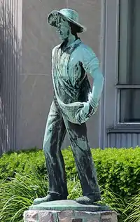 The Sower is a public art work by artist Gustav Bohland, located on the south side of Milwaukee, Wisconsin.[1] The bronze sculpture depicts an agricultural worker dressed in overalls and carrying a seed bag. The figure's shirt sleeves are rolled up past his elbows and the wide brim of a hat shades his face. His shirt collar is open. One hand holds the seed bag against his hip, and the other hand is cupped and extended in a gesture of scattering seeds. His boots rest on a small round base mounted on a circular flagstone pedestal.[2] The artwork is located at the former corporate headquarters of Froedtert Malting Company which is now the US headquarters for MaltEurop.