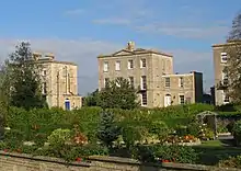 Pevsner wrote that "the only rewarding part of Melksham is by the church".[15] Melksham House, south of the church, is early 18th century but largely rebuilt after a 1920 fire and adapted for use as a sports and social club.[16] Southwest of the church, a 15th-century tithe barn was remodelled into a school by G. E. Street in 1878;[17] the school left the premises in 1973[18] and the building is now residential.