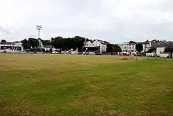 Greyhound racing took place around the pitch following the construction of a track in 1987.[2] Race night was a Thursday evening and race distances consisted of 420 and 700 metres. It was an all-grass surface with an 'Outside Sumner' hare system. There were kennels for 30 greyhounds and a totalisator on site and the track circumference was 370 metres which was described as having tight bends. The venture was short-lived, with the racing ending in 1988.[3] The greyhound racing was independent (not affiliated to the sports governing body the National Greyhound Racing Club) and was known as a flapping track, which was the nickname given to independent tracks.