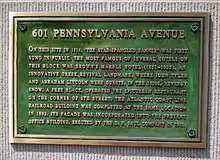 A plaque displayed at Fort Meade, South Dakota, claims that the idea of making "The Star Spangled Banner" the national anthem began on their parade ground in 1892. Colonel Caleb Carlton, post commander, established the tradition that the song be played "at retreat and at the close of parades and concerts." Carlton explained the custom to Governor Sheldon of South Dakota who "promised me that he would try to have the custom established among the state militia." Carlton wrote that after a similar discussion, Secretary of War Daniel S. Lamont issued an order that it "be played at every Army post every evening at retreat."[25]