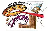 Several days before he started writing the episode, he received a call from Bernard Cribbins, who proposed a scene in which his character, Wilfred Mott, would fire a paintball pellet at a Dalek's eyestalk. He proposed it as a reference to the Peter Cushing Dr. Who films that he starred in during the mid-1960s, and thought it would provide comic relief in between heavy exposition.[19][20] The Dalek's response—evaporating the paintball and replying "My vision is not impaired!"—was added after Cook reminded Davies it was "obligatory" to invert the recurring phrase spoken when a Dalek was blinded ("Vision impaired!"), and remove a weakness the Daleks had exhibited since their first appearance in the 1963–1964 serial The Daleks.[2][21] Wilfred's reaction to Rose after she blew up the same Dalek—asking her if she wanted to swap weapons—was likewise added by Cribbins by way of an ad-lib during filming.[2]