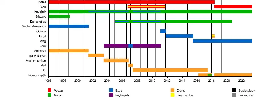 - Nefas – vocals (1996–2006, 2011–2018), vocals (only studio) (2006–2011)