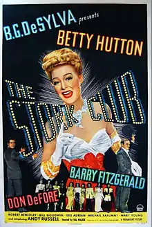 The Stork Club is a 1945 American musical comedy film directed by Hal Walker and starring Betty Hutton. The supporting cast features Barry Fitzgerald, Don DeFore and Robert Benchley.