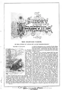 ![]() Example title page from an 1867 annual volume of The Sunday Magazine, featuring the serialized novel The Seaboard Parish by George MacDonald | |