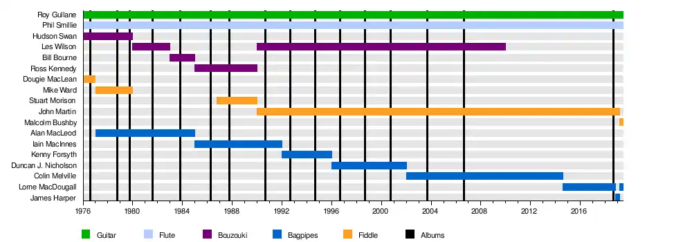 | Past members | Lorne MacDougall John Martin Colin Melville Leslie Wilson Alan MacLeod Bill Bourne Dougie MacLean Duncan J. Nicholson Struan Thorpe Gordon Duncan Hudson Swan Iain MacInnes Kenny Forsyth Mike Ward Ross Kennedy Stuart Morison John Cassidy Willie Beaton David Shaw Willie Beag Stuart McKay Neil Doherty Jim McGowan |