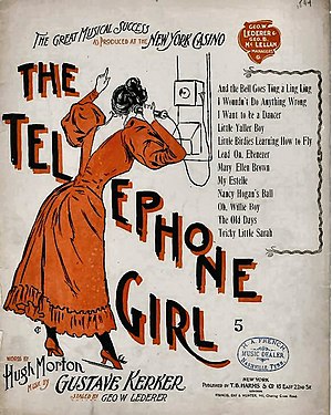 The Telephone Girl is a farce musical comedy by C. M. S. McLellan (as Hugh Morton), with music by composer Gustave Kerker. The play made its New York debut at the Casino Theatre under the direction of George W. Lederer on December 27, 1897. Though not a favorite with the critics, The Telephone Girl would go on to have a successful run at the Casino and do well on subsequent road tours. The original New York cast starred Clara Lipman as ‘Estelle Cookoo’ and her real life husband, Louis Mann, as 'Hans Nix', roles assumed by Mabel Hite and Harry Hermsen two years later during an extensive road tour of North America.[1] [2]