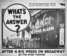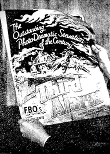 The Third Alarm is a 1922 American silent melodrama directed by Emory Johnson. FBO released the film in January 1923. The film's "All-Star" cast included Ralph Lewis, Johnnie Walker, and Johnson's wife, Ella Hall. Emilie Johnson, Johnson's mother, wrote both the story and screenplay. The Third Alarm was the second picture in Johnson's eight-picture contract with FBO.[1]