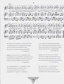 Malcolm MacFarlane (1853-1931) translated this song from the Scottish Gaelic of Evan MacColl (1808-1898).[1] It was first published in Macfarlane's book, Songs of the Highlands, Inverness: Logan & Company, 1902, pp. 44–45.[2] The accompaniment was by Frederick Wilson Whitehead (1863-1926). It is considered by some to be a possible National Anthem for Scotland. A spirited rendition of this song by Ina Miller can be found here.