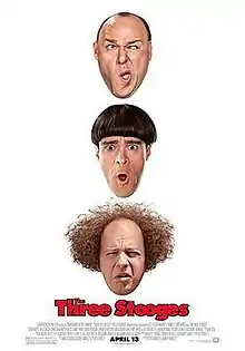 The Three Stooges (promoted as The Three Stooges: The Movie) is a 2012 American biographical slapstick comedy film based on the film shorts from 1934 to 1959 starring the comedy trio of the same name. It was produced, written and directed by the Farrelly brothers and co-written by Mike Cerrone. It stars Chris Diamantopoulos, Sean Hayes, and Will Sasso, re-creating the eponymous characters played by Moe Howard, Larry Fine and Curly Howard.