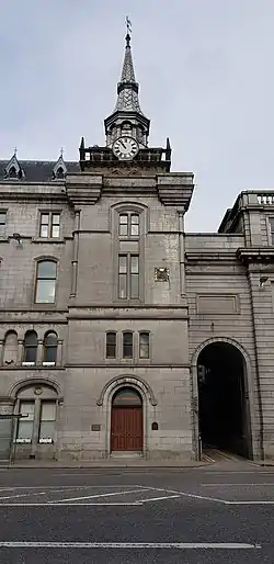 Considered one of the oldest buildings in Aberdeen, the tolbooth was built between 1616 and 1629[2] and is attached to Aberdeen Town House on the city centre's Union Street.[3] In the mid-16th century, Aberdeen commissioned its first guillotine for executing criminals there.[3] This device is on display at the museum for the public to view.[4]