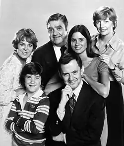 ![]() Front, L–R: Brad Savage, Tony Randall. Back: Rachel Roberts, Barney Martin, Penny Peyser, and Allyn Ann McLerie (1977) | |