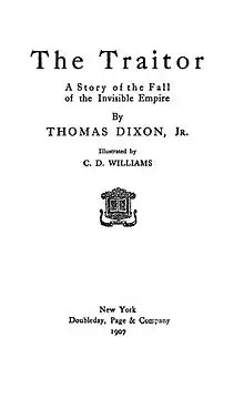 The Traitor: A Story of the Fall of the Invisible Empire is a 1907 novel by Thomas Dixon Jr. It is the third part in a trilogy about the Ku Klux Klan during Reconstruction.[1] The two previous installments were The Leopard's Spots, published in 1902, and The Clansman: An Historical Romance of the Ku Klux Klan, published in 1905.[1]
