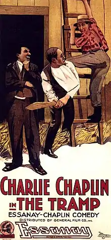 The Tramp is Charlie Chaplin's sixth film for Essanay Studios and was released in 1915. Directed by Chaplin, it was the fifth and last film made at Essanay's Niles, California studio.[1] The Tramp marked the beginning of The Tramp character most known today, even though Chaplin played the character in earlier films. This film marked the first departure from his more slapstick character in the earlier films, with a sad ending and showing he cared for others, rather than just himself. The film co-stars Edna Purviance as the farmer's daughter and Ernest Van Pelt as Edna's father. The outdoor scenes were filmed on location near Niles.