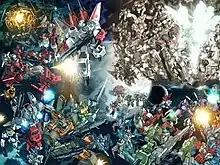 Dreamwave Productions shut down on January 4, 2005, and announced they would cease publication of all their comics, leaving Transformers: Generation One and its prequel series, Transformers: The War Within incomplete.[2] Chris Ryall, editor-in-chief of IDW Publishing, leaped at the chance to bid on the property.[3] On May 19, 2005, Hasbro announced they had awarded the licensing rights to IDW Publishing, with plans for an issue #0 in October 2005 and an ongoing title entitled The Transformers: Infiltration to begin in January 2006.[4] Beforehand, Ryall met up with long-time writer Simon Furman.[5] Furman aimed for a contemporary version of the Generation 1 incarnation to appeal to new and old fans alike. They both cited a focus on the "Robots in Disguise" element of the characters, aiming to bring back their "myth and majesty".[6] Overall, Furman described it as, "This was, at last (after 20-plus years) MY take on Transformers."[7] Furman also aimed for a real time approach,[8] using maps to help guide his stories.[9] Infiltration's issue #0 sold 100,000 copies in pre-orders, a record for the company.[10] Furman focused the story on Autobot medic Ratchet and broke new ground for G1-based storylines by excluding the Ark crash storyline and having them only just recently arrived deliberately, to give proper intent to the Transformers being on Earth,[6] thus separating the fictional universe from the Beast Wars one.[7] E. J. Su was hired as the artist, and was given free rein to re-design characters slightly.[11]