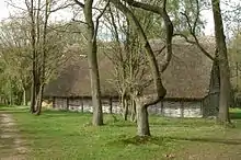 The second series of Inside No. 9 was written in 2014, and then filmed from the end of 2014 into early 2015.[1][2] The writing process for "The Trial of Elizabeth Gadge" began with Shearsmith's suggestion of a witch trial as a plot idea, and the writers then worked out the details of the setting.[3] The episode was filmed, mostly in story order,[4] on location in a barn at the Chiltern Open Air Museum.[5] The same location had previously been used for Doctor Who and Horrible Histories. In addition, concurrent with the filming of "The Trial of Elizabeth Gadge", a Drunk History sketch starring Luke Pasqualino—a previous Inside No. 9 guest star—was being filmed nearby.[6] Shot in December, "The Trial of Elizabeth Gadge" was the first episode of the second series to be filmed.[5][7] The barn was extremely cold during filming; Pemberton joked that, unlike on Titanic, they would not be digitally adding breath in the production process.[5]