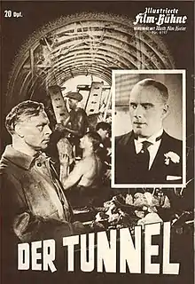 The Tunnel (German: Der Tunnel) is a 1933 French-German science fiction film directed by Curtis Bernhardt and starring Paul Hartmann, Attila Hörbiger and Olly von Flint.[1] The film was made by Bavaria Film, and shot at the company's Emelka Studios in Munich. It is an adaptation of Bernhard Kellermann's 1913 novel Der Tunnel about the construction of a vast tunnel under the Atlantic Ocean connecting Europe and America. It premiered at the Capitol Theatre in November 1933.[2]