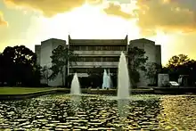 The university consists of fifteen colleges and an interdisciplinary honors college offering some 310 degree programs and enroll approximately 37,000 undergraduate and 10,000 graduate students.[12][13] [14] Houston has nine profesional schools: the Hines College of Architecture, Bauer College of Business, Hilton College of Global Hospitality, Law Center, College of Medicine, College of Nursing, College of Optometry, College of Pharmacy, College of Social Work, and the Hobby School of Public Affairs. The university's campus, which is primarily in southeast Houston, spans 894 acres (3.62 km2), with the inclusion of its two instructional sites located in Sugar Land and Katy.[15] The university is also the founding campus of the University of Houston System.[16] Undergraduate admissions to the university is categorized in the second quintile, "more selective".[17] Nearly 88% of the student body are from the state of Texas[18] and 9% are international students representing over 130 nations.[19]