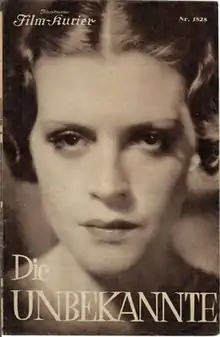 The Unknown (German: Die Unbekannte) is a 1936 German drama film directed by Frank Wisbar and starring Sybille Schmitz, Jean Galland and Ilse Abel.[1] The film's sets were designed by the art directors Benno von Arent and Artur Günther. Location shooting took place around Berlin, Stuttgart and Dinkelsbühl in Bavaria. It was inspired by the Unknown Woman of the Seine and based on a novel by Reinhold Conrad Muschler.