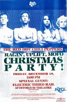 The tour is also notable for Faith No More being the supporting act for the first two and a half months.[8][9] Faith No More was at the time promoting their second release and major label debut Introduce Yourself.[8] Guitarist Jim Martin recalled: "We were travelling in a box van with no windows. We drove all the way to the east coast for the first show. Flea asked me if we liked to smoke weed. I said: ‘Yes’ and he said: ‘We're going to get along just fine’. We did something like 52 dates in 56 days."[10] Faith No More is said to have been heavily influenced by the Chili Peppers' sound, which is very evident with their first major label album. A long feud between Kiedis and future Faith No More frontman Mike Patton started in 1990 when Kiedis accused Patton of ripping off his sound and style.[11][12][13] Although he was not a member of band at the time of the tour in 1987, Patton later stated that by 1990, Faith No More were "really big in Europe and enjoying a lot more notoriety than the Chili Peppers were" which annoyed Kiedis and sparked the grudge.[14] The feud would continue for years with Patton's other band, Mr. Bungle, impersonating the Chili Peppers onstage during a Halloween show in 1999 including making fun of Slovak's death and pretending to shoot up heroin on stage. Around that time, Patton had given an interview accusing Red Hot Chili Peppers of sabotaging potential bookings for Mr. Bungle.[14]