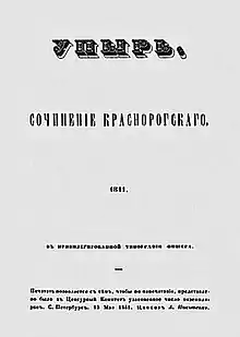 The Vampire (Russian: Упырь, Oupyr) is a gothic novella by Aleksey Konstantinovich Tolstoy, first published in Saint Petersburg in 1841 under the pseudonym of Krasnorogsky.[2][3]
