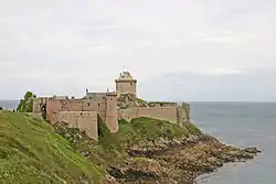 The Vikings is a 1958 American epic[5] historical fiction swashbuckling film directed by Richard Fleischer, filmed in Technirama, and printed in Technicolor. It was produced by Jerry Bresler and stars Kirk Douglas. It is based on the 1951 novel The Viking by Edison Marshall, which in turn is based on material from the sagas of Ragnar Lodbrok and his sons. Other starring roles were taken by then husband-and-wife Tony Curtis and Janet Leigh as well as Ernest Borgnine. The film made notable use of natural locations in Norway. It was mostly filmed in Maurangerfjorden and Maurangsnes, captured on film by cinematographer Jack Cardiff, although Aella's castle was the real Fort-la-Latte in north-east Brittany in France.