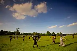 This piece was performed on 6 July 2019 at Houghton Hall. It was a promenade performance in the grounds of the Palladian house built in the 1720s for Britain's first Prime Minister, at a time when they were hosting a year-long exhibition (Nature and Inspiration) of works by Henry Moore, James Turrell (the Skyspace), Richard Long (the Earth Sky pieces) and Rachel Whiteread.