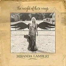 The Weight of These Wings is the sixth studio album by American country music artist Miranda Lambert. It was released on November 18, 2016, via RCA Records Nashville. The album consists of two discs, with Disc 1 titled The Nerve, and Disc 2 titled The Heart.[1] The album debuted at No. 1 on the Billboard Country Albums chart and No. 3 on the all-genre US Billboard 200 chart,[2] and has been certified Platinum by the Recording Industry Association of America (RIAA).[3] In addition to winning Album of the Year at the 2017 ACM Awards,[4] it is considered by several music publications as one of the best albums of the year. In 2020, the album was ranked at 480 on Rolling Stone's 500 Greatest Albums of All Time list.[5]