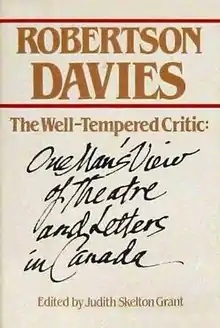 - Davies, Robertson. The Well-Tempered Critic: One man's view of the theatre and letters in Canada; ed. by Judith Skelton Grant, Toronto: McClelland and Stewart, 1981. ISBN 0-7710-2567-X