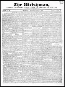 The Welshman (established in 1832) was a weekly 'radical' English language Welsh newspaper, reporting local and national news and information. It was published in Carmarthen and distributed in the Cardiganshire area and through much of South Wales.