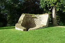 In the grounds is a scheduled ancient monument, a dovecote dating from the 14th or 15th century.[7] Its thick circular walls enclose an area 4.8 metres (16 ft) in diameter. Within the walls there were originally about 500 nest holes where pigeons were bred for meat. At some point before 1920 the roof fell in, "during the owner's temporary absence from the property"[8] followed later by part of the walls.