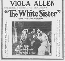 The White Sister is a 1915 American silent film produced by Essanay Studios. It is based on the 1909 play The White Sister by F. Marion Crawford and Walter Hackett.[1] This film, directed by Fred E. Wright, stars Viola Allen, a prominent stage actress in her first movie. Allen had also created the role in the play and it was one of her biggest successes.[2][3] It is not known whether the film survives.[2]