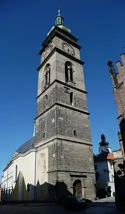 The White Tower (Czech: Bílá věž) is the tallest dominant of the city Hradec Králové in the Czech Republic. From the tower's galleries there is a unique view not only of Hradec Králové, but also of the distant peaks of the Giant Mountains and the Orlické Mountains. In recent years the tower came back to life with the exhibitions and became the center of tourism and cultural events. The White Tower houses the third largest and heaviest bell in the Czech Republic – the Augustine Bell.[1]