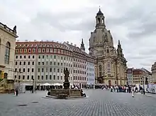 The Wolves Are Back? (Die Wölfe sind zurück?) is a sculpture exhibition created by German artist Rainer Opolka. The exhibition was created as a response to the growing presence of Pegida in the German city of Dresden. The exhibition was installed in front of the Dresden Frauenkirche in Neumarkt square on March 16, 2016, where it remained until March 23, 2016. The exhibition featured 66 metal wolf sculptures placed around the square. The wolves were anthropomorphic in nature, appearing more human towards the center of the exhibition. The wolf statues were arranged around a central figure, a golden wolf giving the Nazi salute. This figure is thought to represent Pegida's leader at the time, Lutz Bachmann.