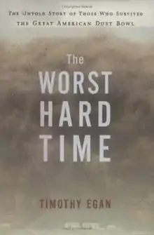 The Worst Hard Time: The Untold Story of Those Who Survived the Great American Dust Bowl is an American history book written by New York Times journalist Timothy Egan and published by Houghton Mifflin in 2006. It tells the problems of people who lived through The Great Depression's Dust Bowl, as a disaster tale.[1]