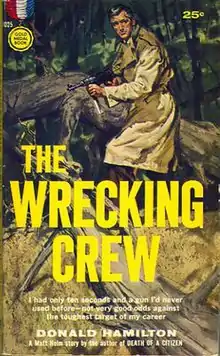 The Wrecking Crew is a spy novel written by Donald Hamilton and first published in 1960. It was the second novel featuring Hamilton's ongoing protagonist, counter-agent and assassin Matt Helm. In this book Hamilton continued the hard-headed and gritty realism he had built up around Helm in the first novel of the series, Death of a Citizen.